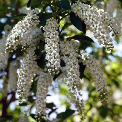 Цветение: Цветки белые, многочисленные. собраны в кисти, цветет в мае.