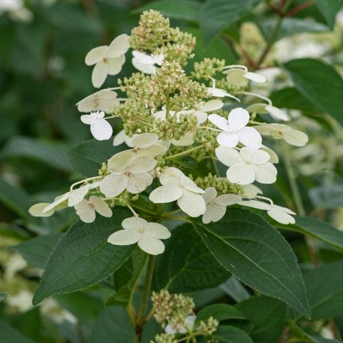 Гортензия метельчатая Прим вайт описание которой подчеркивает изящество формы, обладает слегка плоскими соцветиями длиной до 30 см. Цветки элегантной формы изначально имеют чистый белый окрас, но ближе к осени начинают нежно розоветь. Важной особенностью растения является его способность к повторному цветению, что делает его фаворитом для одиночных и групповых посадок. Соцветия состоят из цветков двух типов, создавая ажурный и легкий образ, который идеально вписывается в ландшафт любого загородного участка в Беларуси.