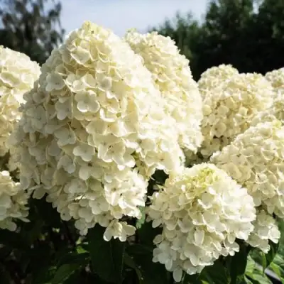 Гортензия метельчатая Саммер сноу (Summer Snow) полностью оправдывает свое название, превращая сад в заснеженную сказку среди жаркого лета. Этот декоративный кустарник отличается компактностью и аккуратностью: при высоте от 80 до 150 см он имеет плотную шаровидную крону диаметром около 100 см. Крепкие прямые побеги и темно-зеленые матовые листья с заостренными концами создают надежный каркас, благодаря которому пышный куст отлично держит форму и не разваливается под тяжестью массивных цветов. Сорт гортензии Саммер сноу ценится садоводами за невероятно крупные кистеобразные соцветия, длина которых может превышать 40 см, а диаметр достигает 35 см.