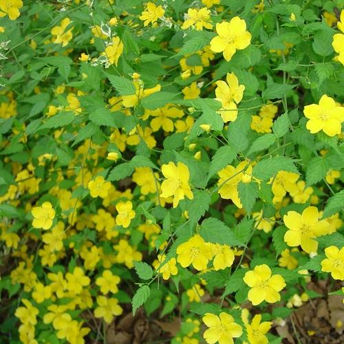 Кустарник одинаково выигрышно смотрится и в одиночных посадках, и в групповых композициях, прекрасно вписываясь в общую картину смешанного цветника. Яркие цветки керрии японской позволяют гармонично сочетать ее с темными однотонными хвойниками: туей, можжевельником, елями. Не менее эффектно выглядит керрия Голден Гвинея японская в составе бордюров и живых изгородей.