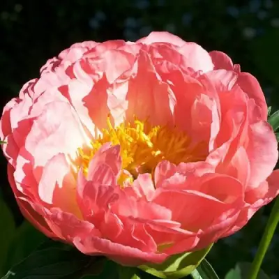 Уникальный для пионов цвет преображается в пионе Корал Бич. Нежного светло-кораллового оттенка лепестки собраны в полумахровый крупный цветок. По мере роспуска цветов лепестки меняют цвет на персиковый, чем заметно выделяются среди других пионов. Цветение ранее, длительное, бутоны распускаются сменяясь новыми цветами с тонким, сладким ароматом.
