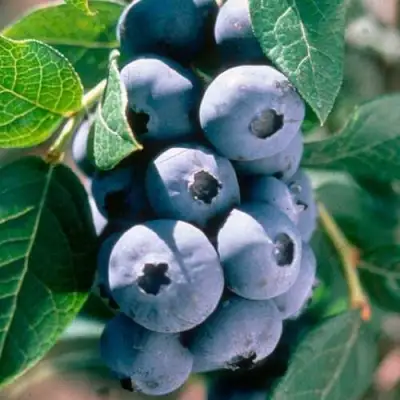 Куст голубики Аврора имеет средний рост, достигая высоты от 1 до 1,5 метров. Он отличается средней раскидистостью, а ветви имеют характерный разветвленный, но не поникший вид. Побеги зелёные, блестящие и неопушённые, с хорошим ветвлением, что обеспечит вам обильный урожай. Листья эллиптическо-овальные, ярко-зелёные летом и багряные осенью, добавляя декоративности посадкам.