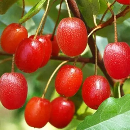 Плодоношение наступает на 3–4 год. Ягоды созревают в конце июля — август (ранний срок). Плоды удлиненные, массой 1,2–1,5 г, ярко-красные с серебристыми точками. Кожица тонкая, но плотная. Мякоть сочная, нежная, вкус кисло-сладкий, пряный (дегустационная оценка 4,5 балла), десертный. Косточка продолговатая, сравнительно крупная.