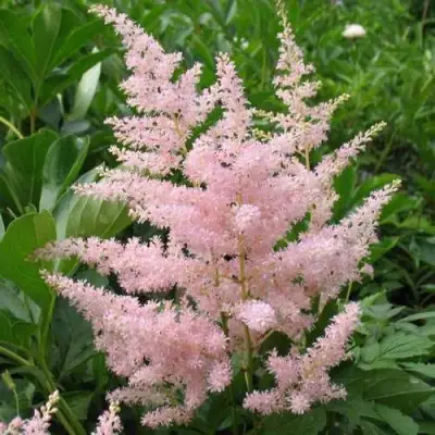 Астильба «Бронзлауб» радует глаз своими пушистыми метельчатыми соцветиями, которые в диаметре достигают значительных размеров. Цветение происходит в июле и продолжается достаточно долго, что позволит вам наслаждаться красотой этого растения в течение всего летнего сезона. Соцветия густые и плотные, а сами цветки очень мелкие, с изящным белым цветом, оттенённым розоватым налётом. Чарующий, медовый аромат цветов наполняет сад неповторимой атмосферой уюта.