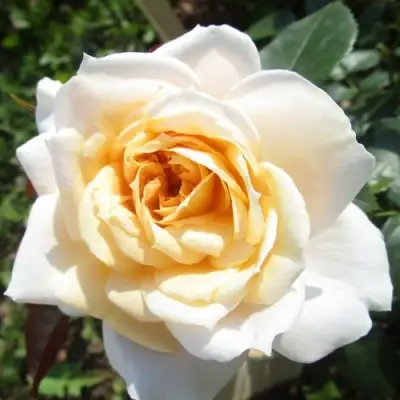 Цветки розы Лионс Роуз имеют прекрасное сочетание кремового и абрикосово-розового оттенков, создавая нежную и романтическую атмосферу. Форма цветка чашевидная, размер средний, диаметр составляет от 7 до 9 см. Цветок плотно махровый, с 60-75 лепестками, расположенными в соцветиях. На одном стебле может быть от 3 до 5 цветков.