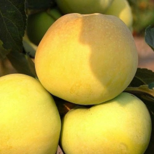 Плоды яблони Антоновка золотая имеют круглую форму и окраску от желтой до зеленовато-желтой с золотистым оттенком. Вес плода может достигать 160-260 граммов, что считается средним и крупным размером. Вкус плода кисло-сладкий, а мякоть очень сочная. Осыпаемость плодов наблюдается при запоздании со съемом.